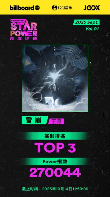 前几天刷微博看到Billboard公告牌又在搞大事!和QQ音乐、JOOX联合发起的「Star Power 月度评选」正在火热进行中,眼看着9月评选就剩最后两天了,梓渝的《泥潭》、刘宇的《我想一直在》、王源的《雪崩》分列前三,竞争那叫一个激烈。